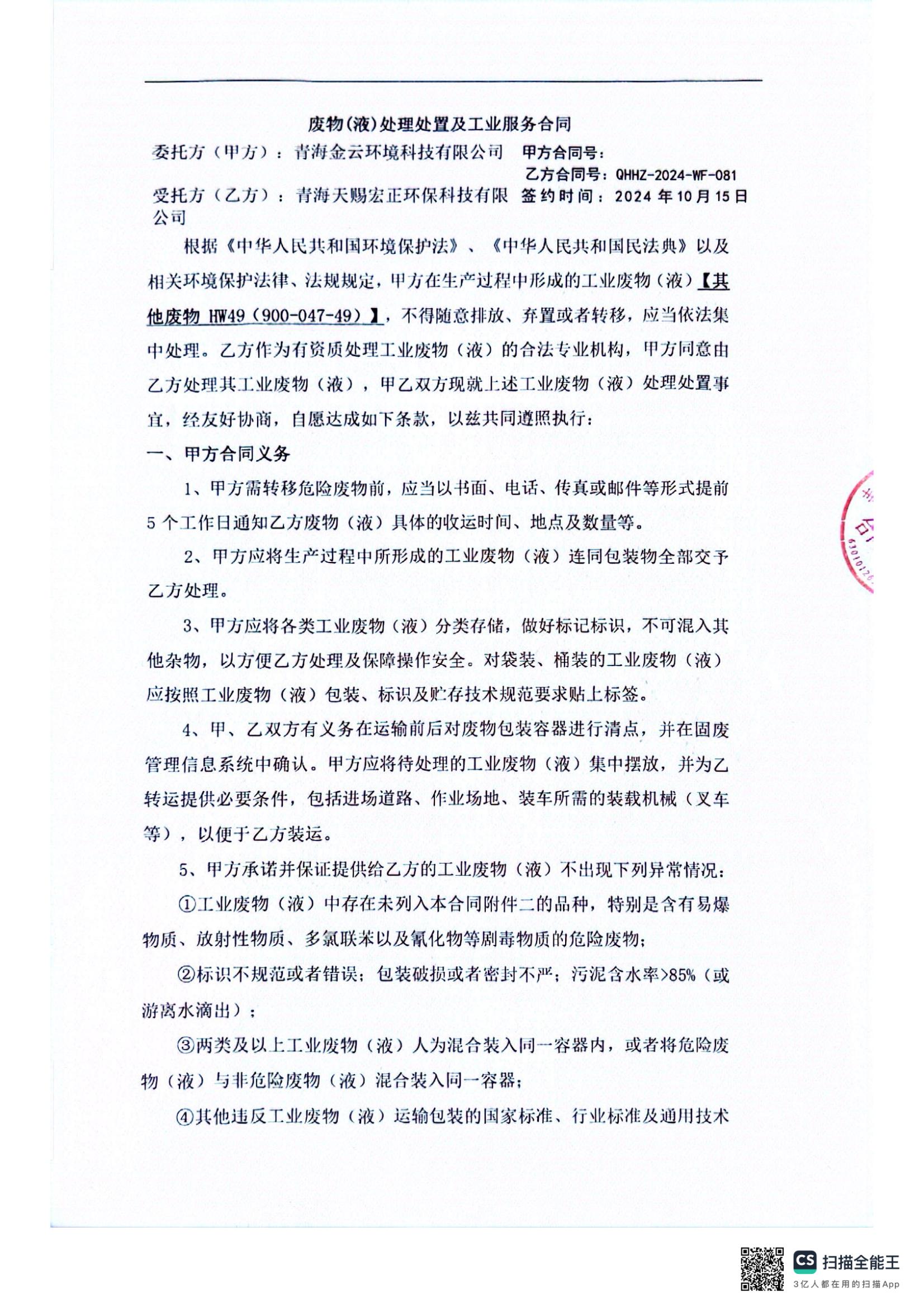 危廢處置合同發(fā)布日期:(2025/1/2) 點(diǎn)擊次數(shù):1363 |