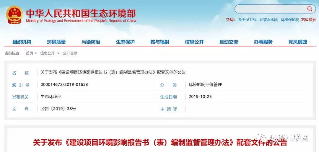 環(huán)境部發(fā)布《建設(shè)項(xiàng)目環(huán)境影響報(bào)告書(表)編制監(jiān)督管理辦法》配套文件發(fā)布日期:(2019-10-28) 點(diǎn)擊次數(shù):2414 |