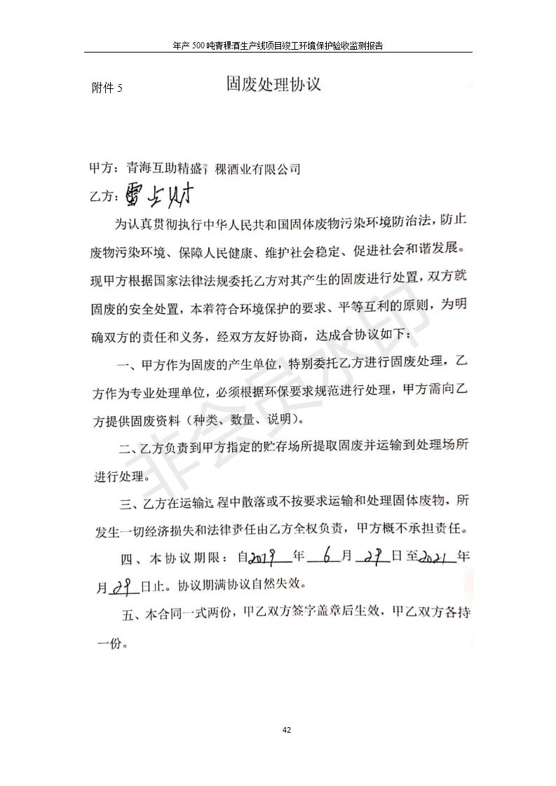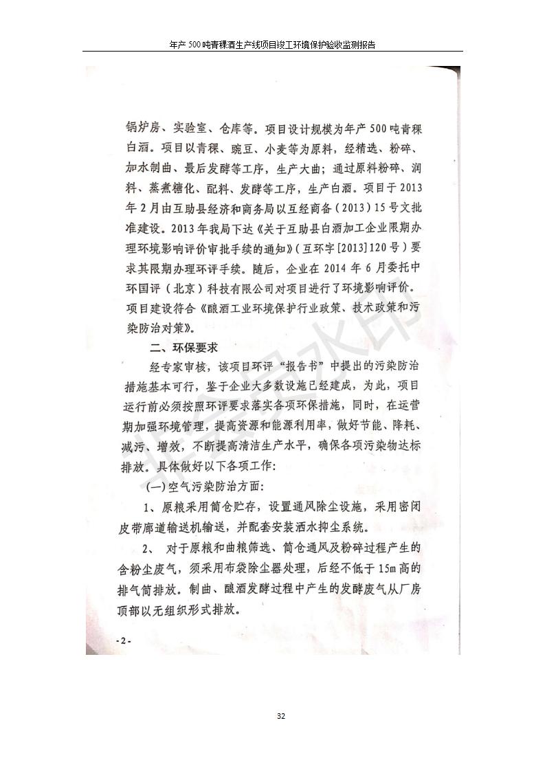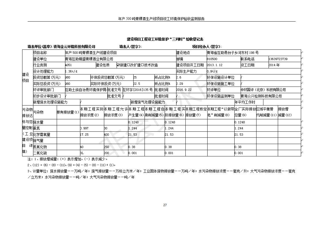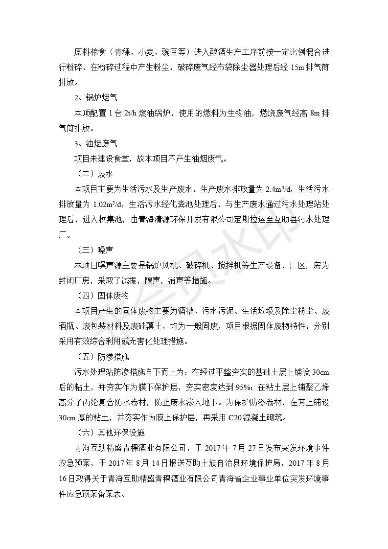 根據(jù)中華人民共和國國務(wù)院令第682號《國務(wù)院關(guān)于修改〈建設(shè)項目環(huán)境保護管理條例〉的決定》和《建設(shè)項目竣工環(huán)境保護驗收暫行辦法》(國務(wù)院令682號),綜合檢測實驗室建設(shè)項目(包括竣工環(huán)境保護驗收監(jiān)測報告表和驗收意見)公示如下。 一、項目名稱:青;ブ⑶囡茦I(yè)有限公司年產(chǎn)500噸青稞酒業(yè)生產(chǎn)線建設(shè)項目 二、地點:青海省海東市互助土族自治縣臺子鄉(xiāng)河東村198號