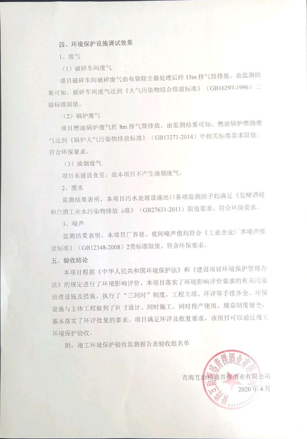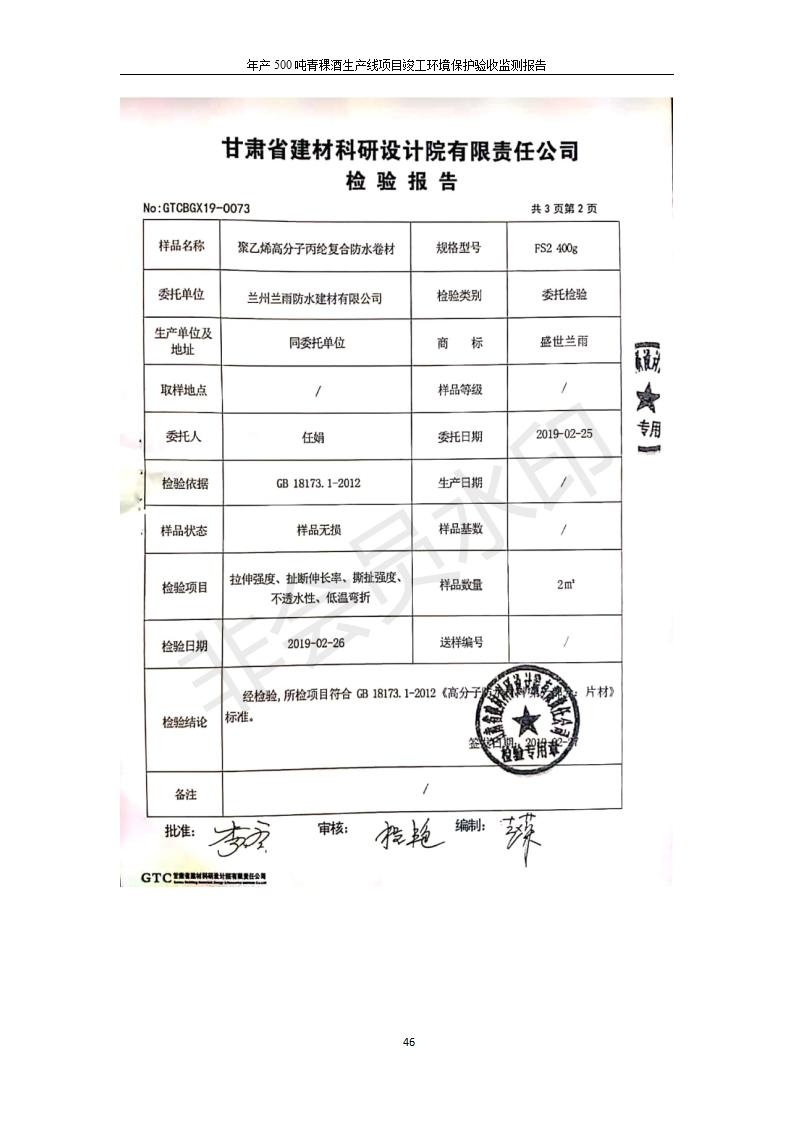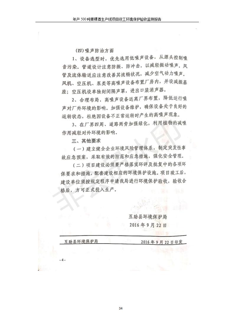 根據(jù)中華人民共和國國務(wù)院令第682號《國務(wù)院關(guān)于修改〈建設(shè)項目環(huán)境保護管理條例〉的決定》和《建設(shè)項目竣工環(huán)境保護驗收暫行辦法》(國務(wù)院令682號),綜合檢測實驗室建設(shè)項目(包括竣工環(huán)境保護驗收監(jiān)測報告表和驗收意見)公示如下。 一、項目名稱:青;ブ⑶囡茦I(yè)有限公司年產(chǎn)500噸青稞酒業(yè)生產(chǎn)線建設(shè)項目 二、地點:青海省海東市互助土族自治縣臺子鄉(xiāng)河東村198號