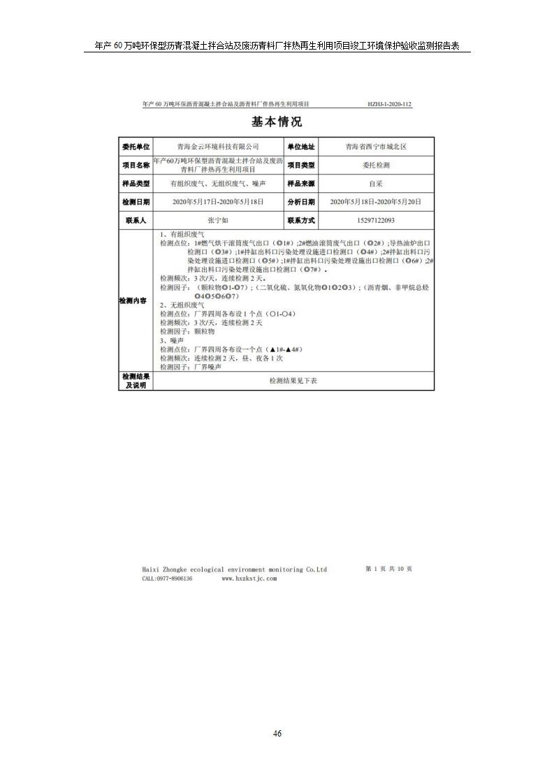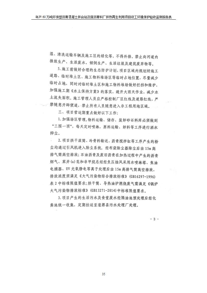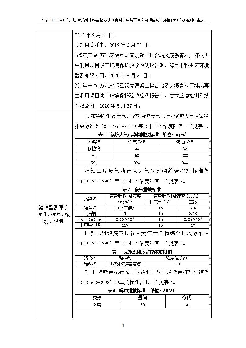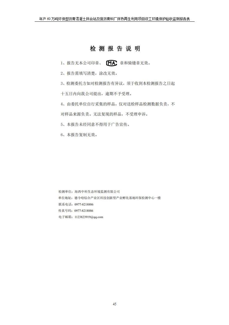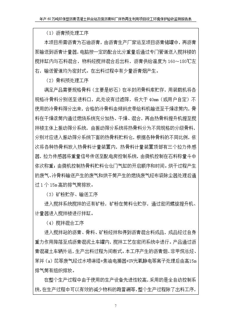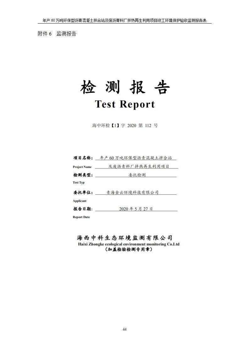 年產(chǎn)60萬噸環(huán)保型瀝青混凝土拌合站及廢瀝青料廠拌熱再生利用項目竣工環(huán)境保護驗收監(jiān)測報告表公示發(fā)布日期:(2020-7-6) 點擊次數(shù):3856 |