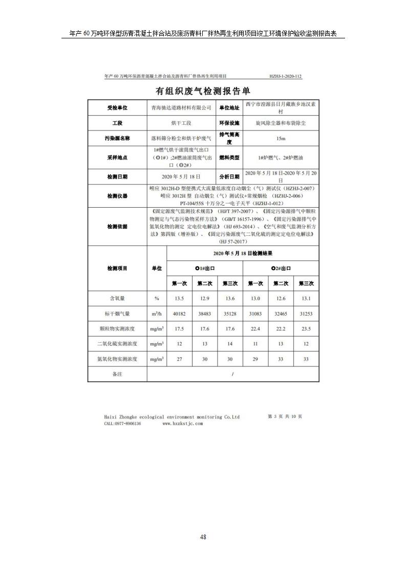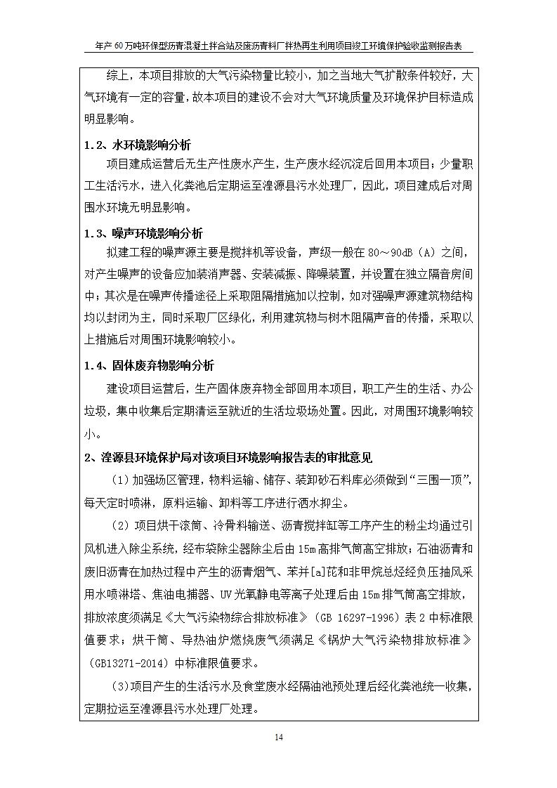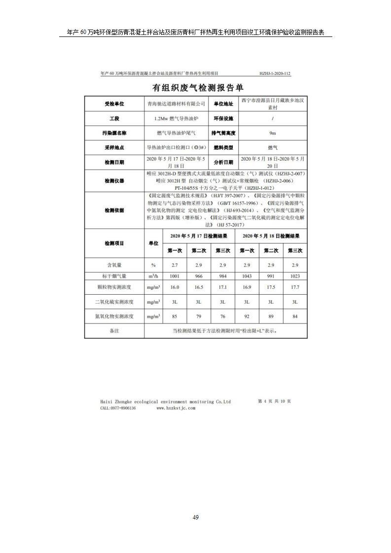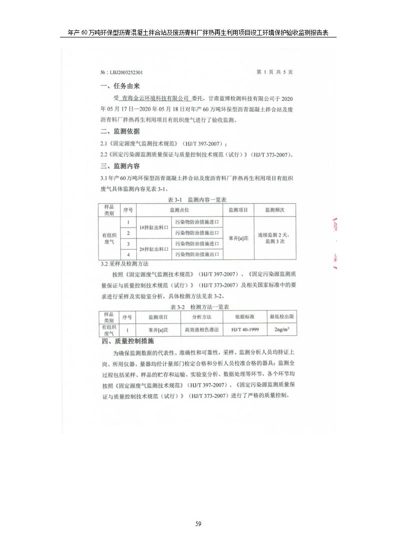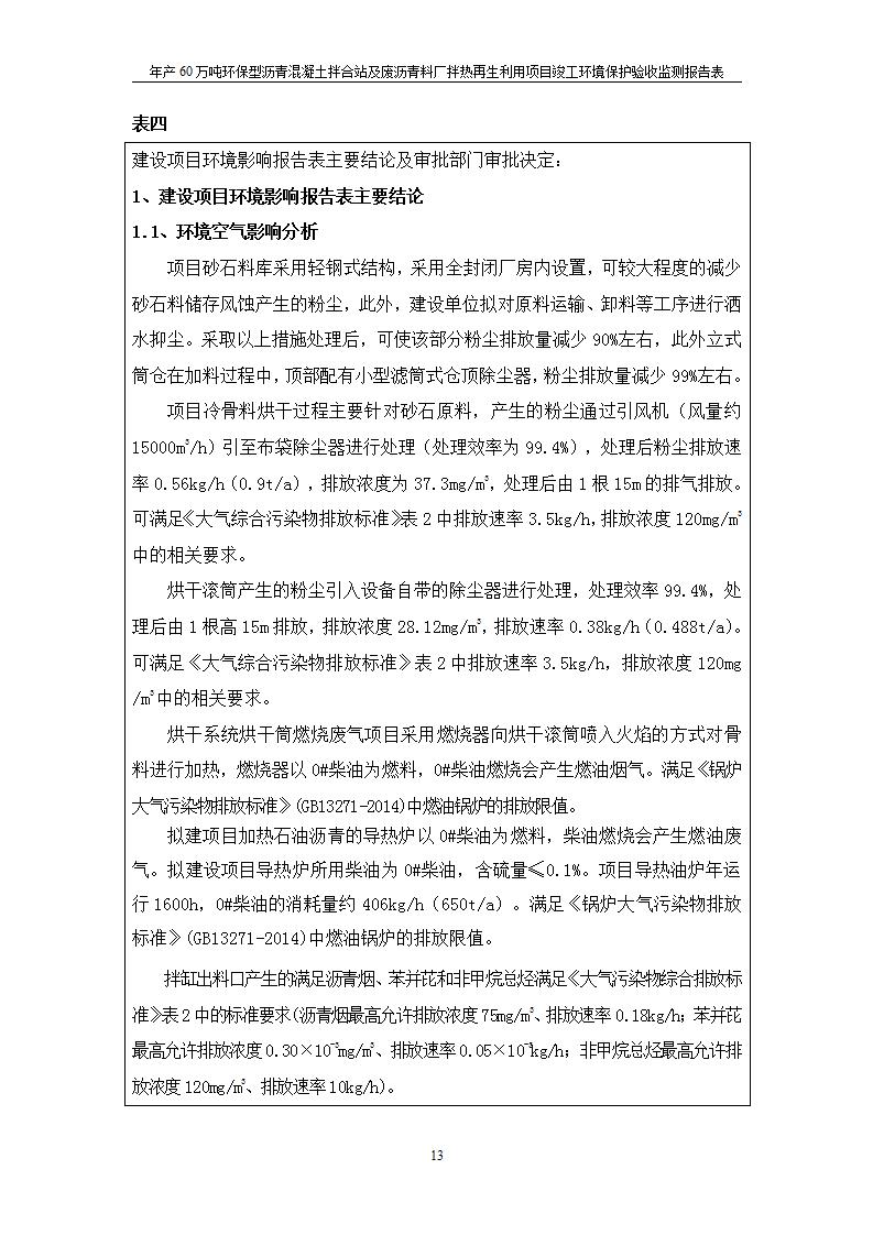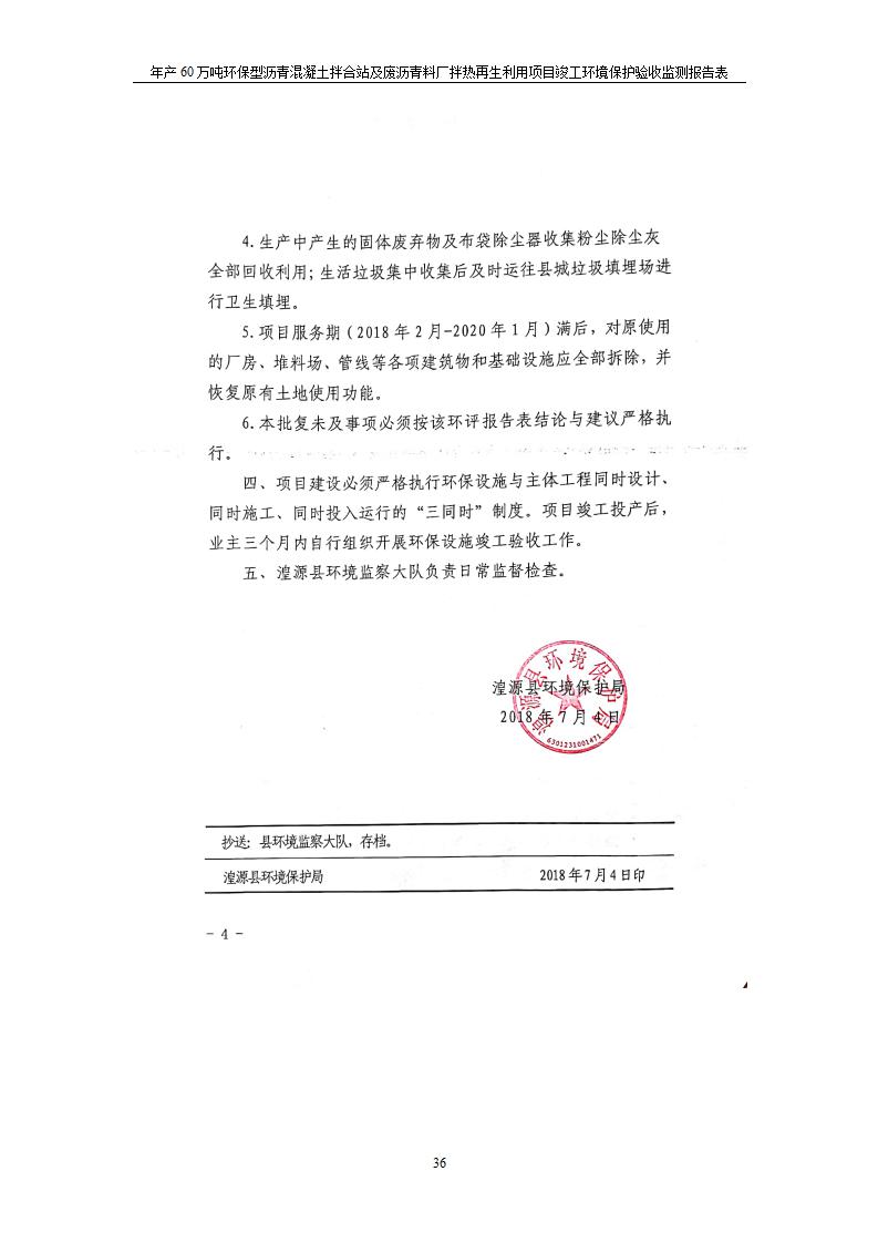 年產(chǎn)60萬噸環(huán)保型瀝青混凝土拌合站及廢瀝青料廠拌熱再生利用項目竣工環(huán)境保護驗收監(jiān)測報告表公示發(fā)布日期:(2020-7-6) 點擊次數(shù):3856 |