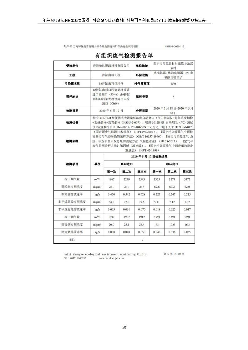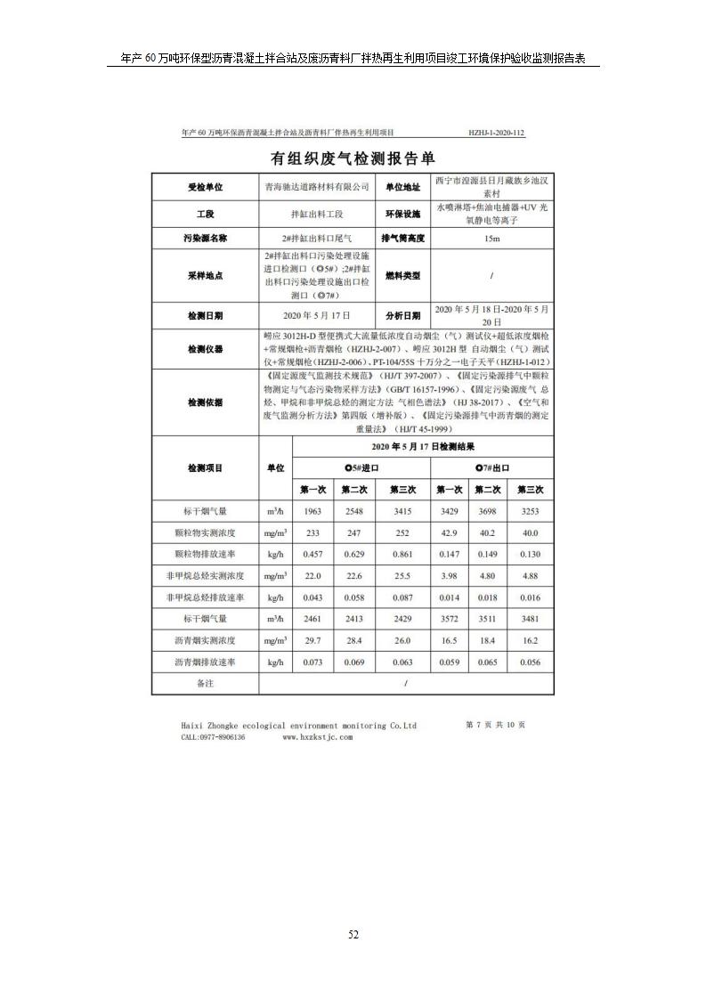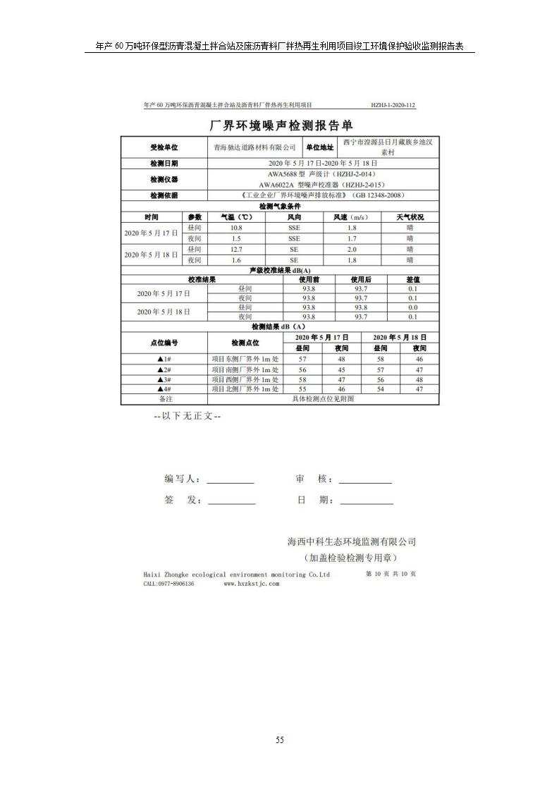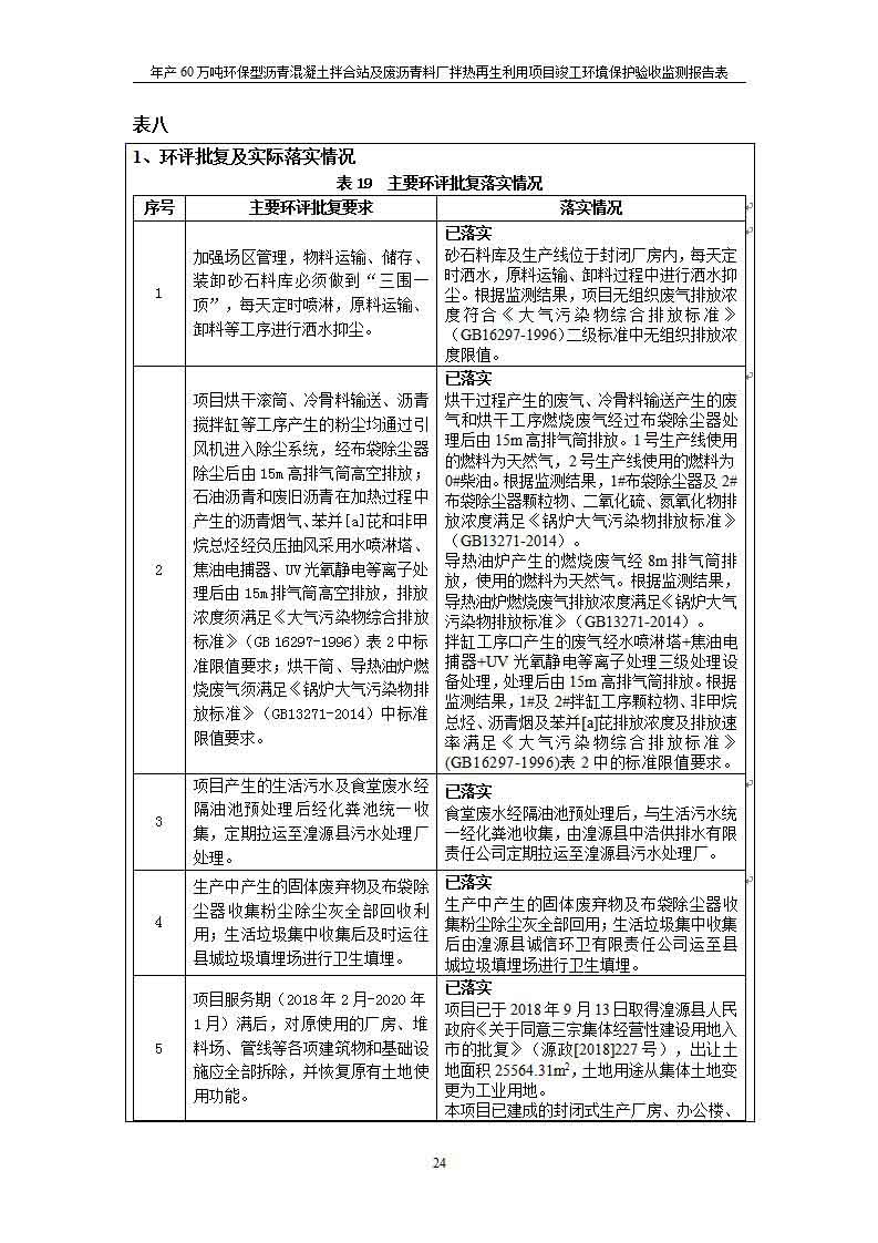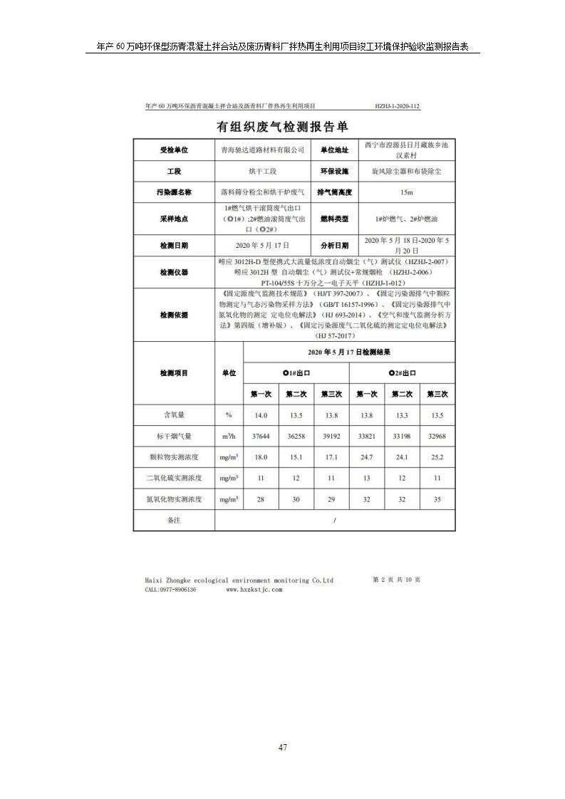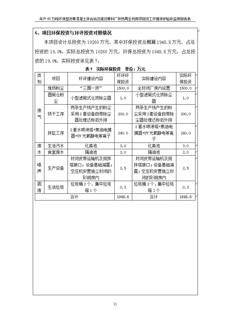 年產(chǎn)60萬噸環(huán)保型瀝青混凝土拌合站及廢瀝青料廠拌熱再生利用項目竣工環(huán)境保護驗收監(jiān)測報告表公示發(fā)布日期:(2020-7-6) 點擊次數(shù):3856 |