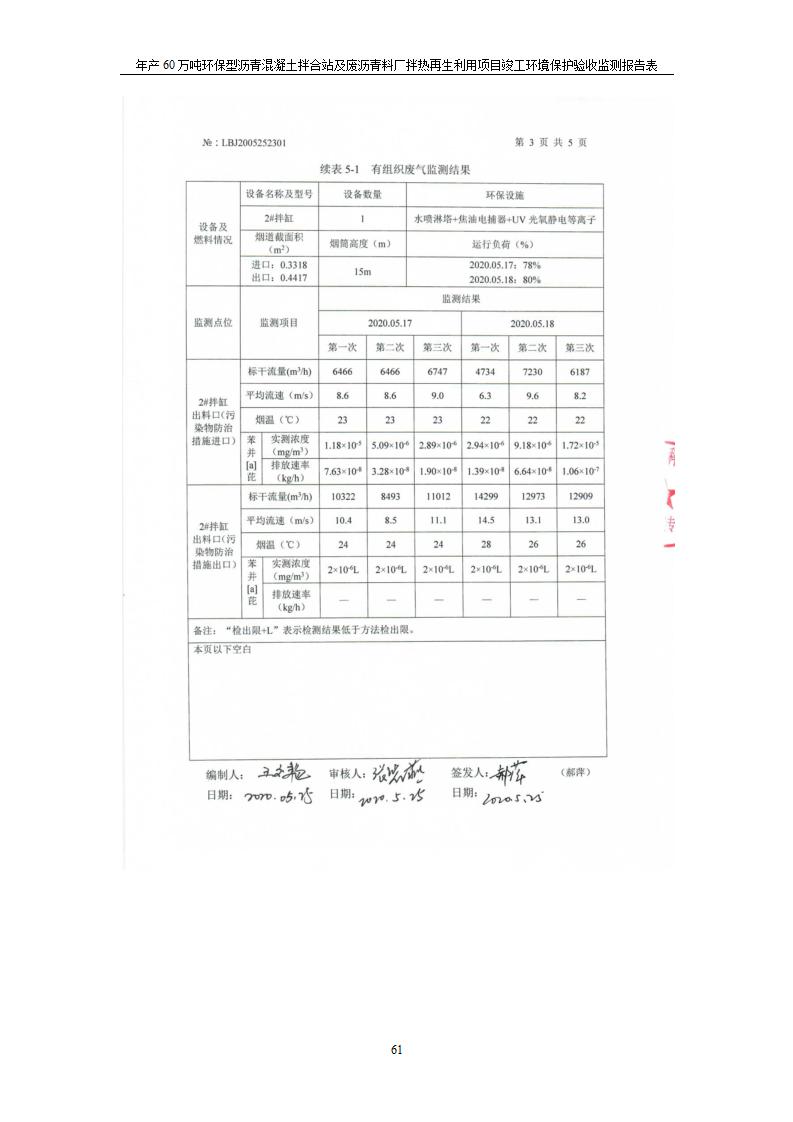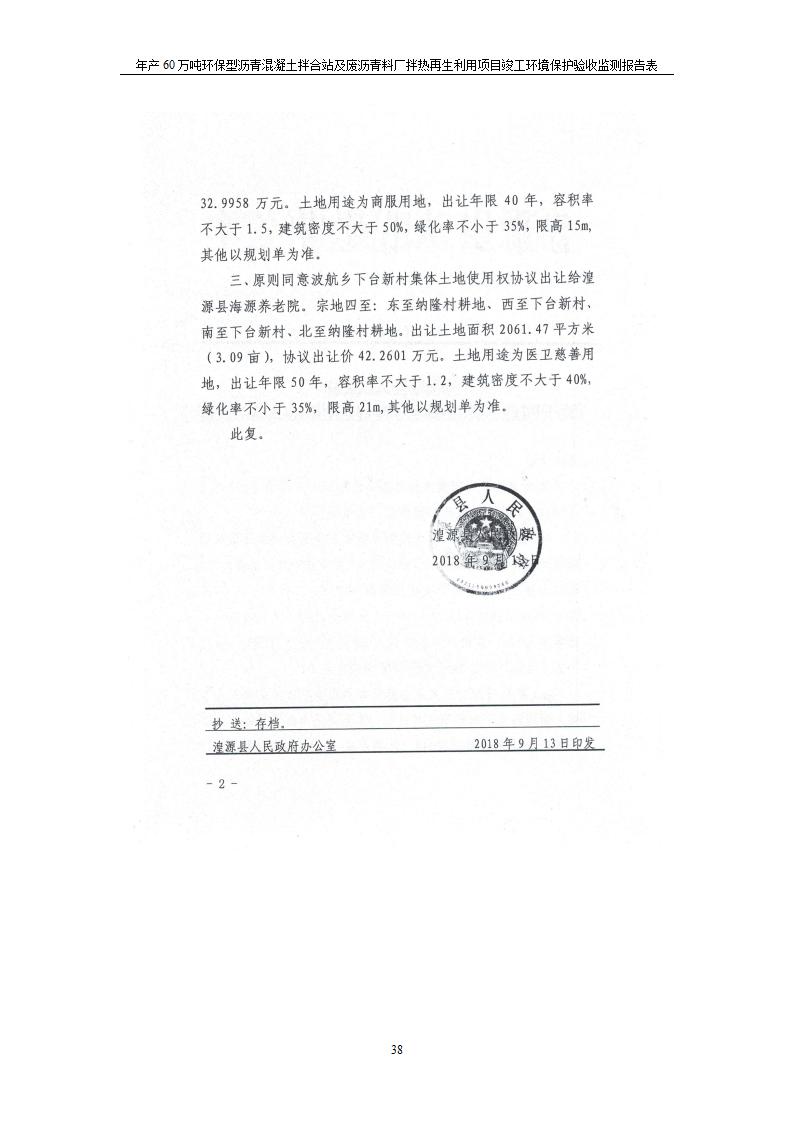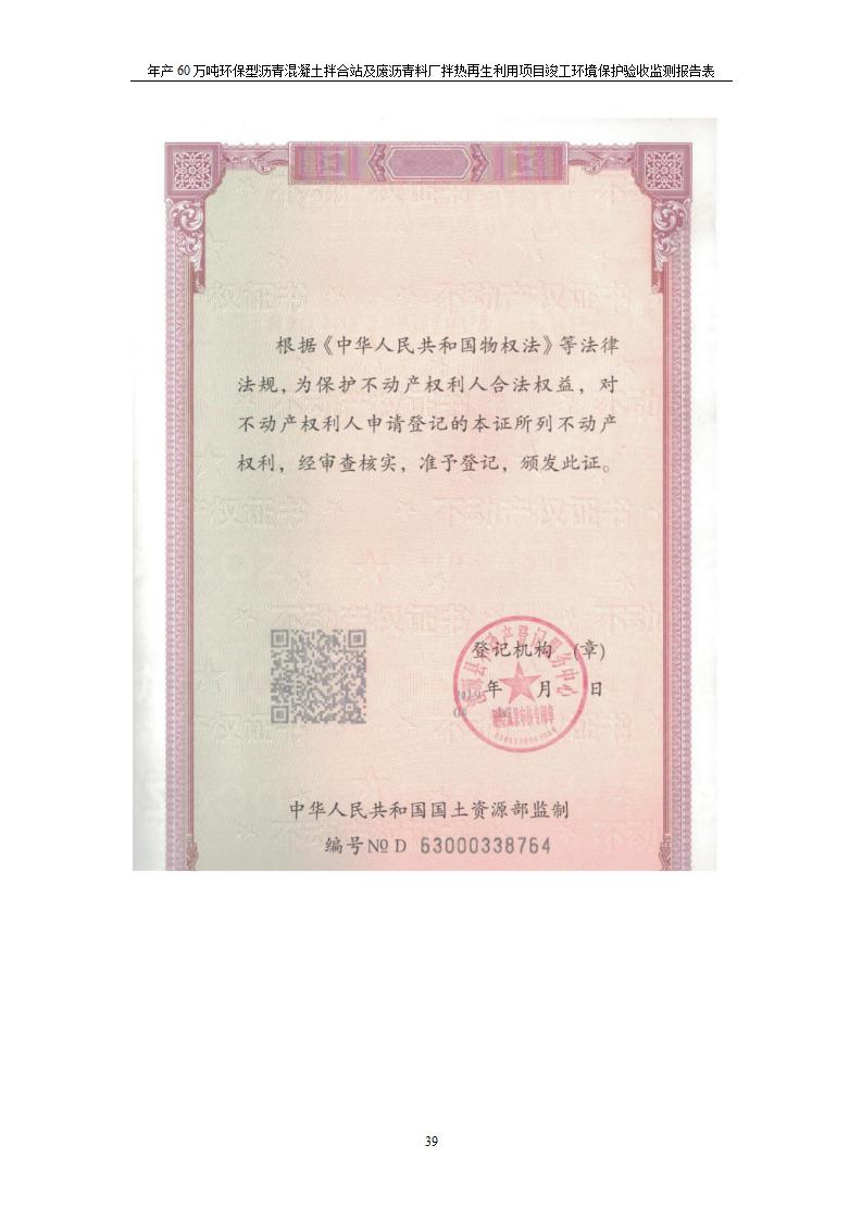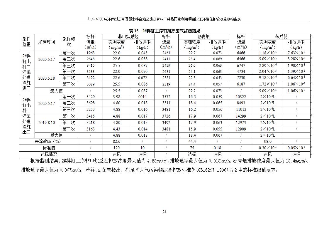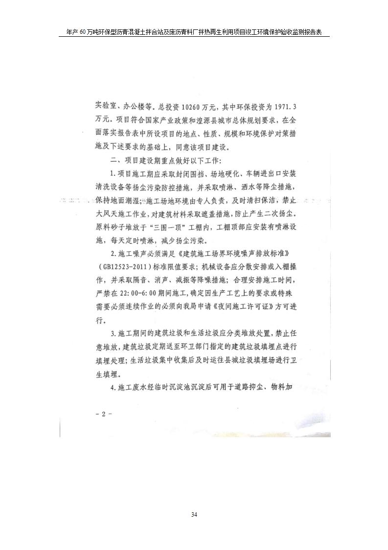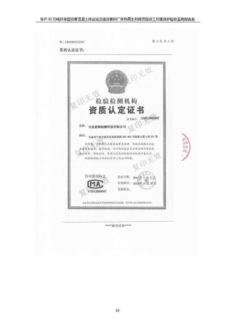 年產(chǎn)60萬噸環(huán)保型瀝青混凝土拌合站及廢瀝青料廠拌熱再生利用項目竣工環(huán)境保護驗收監(jiān)測報告表公示發(fā)布日期:(2020-7-6) 點擊次數(shù):3856 |